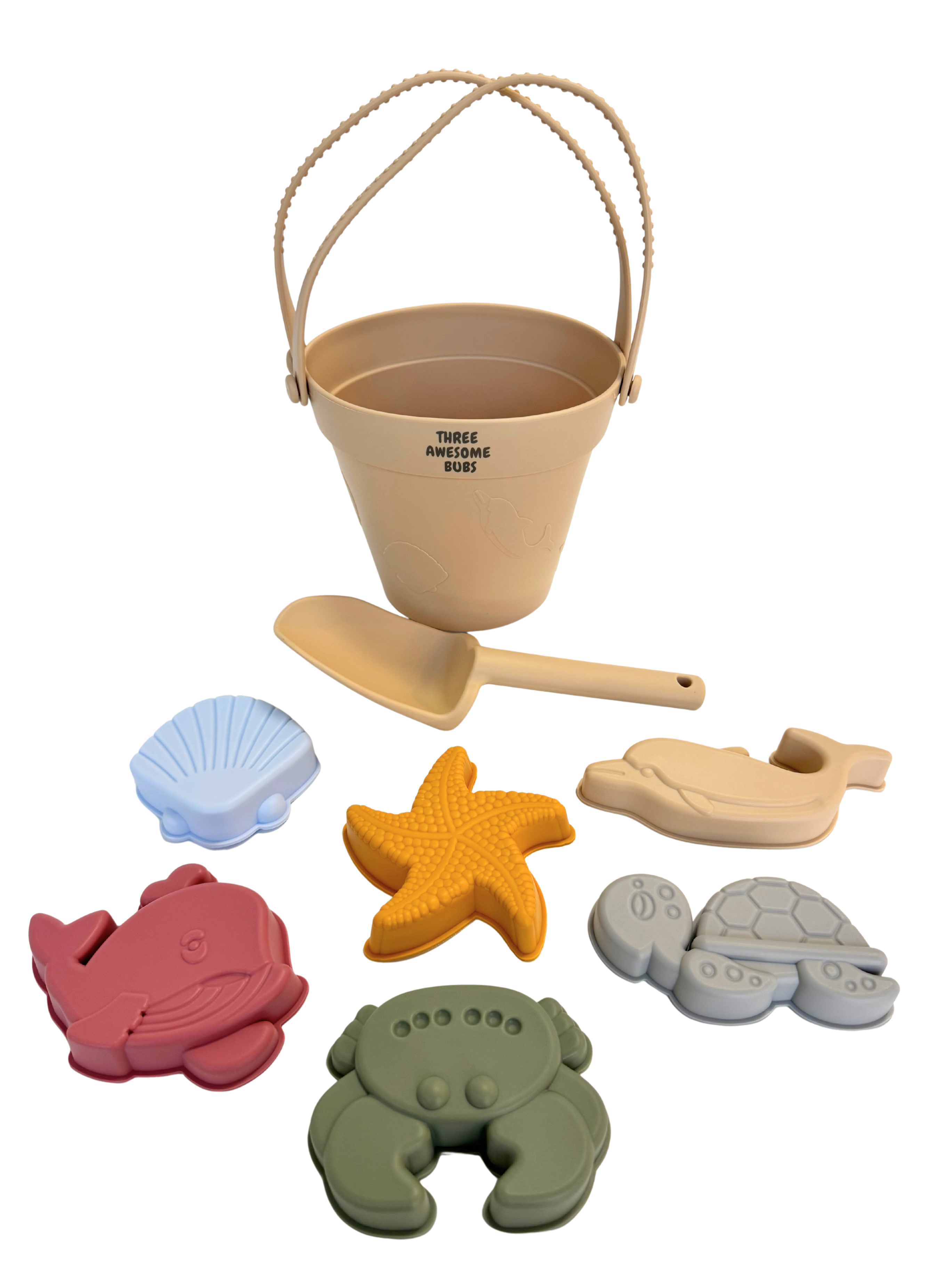- Silicone 6 Ocean-Themed Beach Moulds – Scallop, dolphin, turtle, starfish, crab and whale. Designed for endless fun.